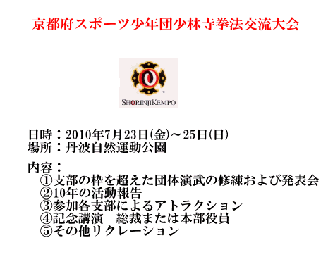 29(金)~30(日) 第16回京都府スポーツ少年団少林寺拳法交流大会 /府立丹波自然運動公園
